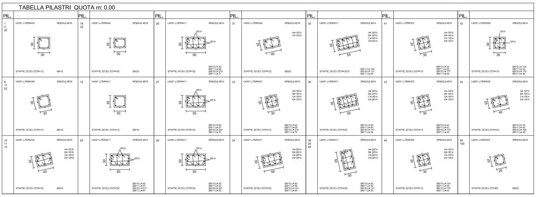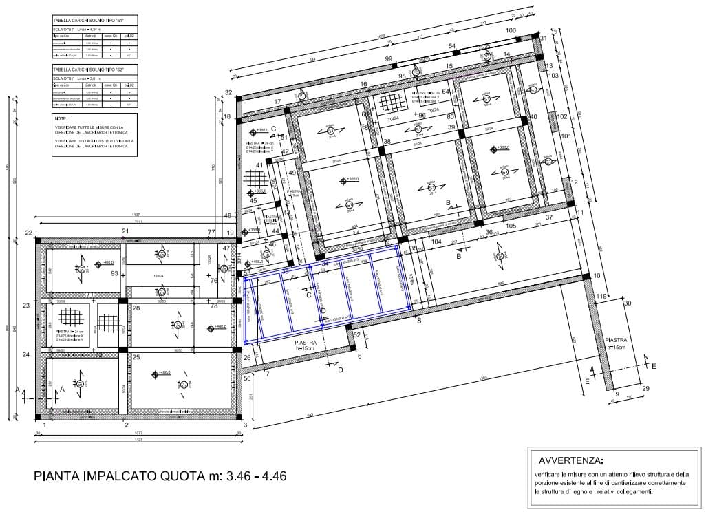 Pilastri PT: 1.22mc Travi primo solaio: 5.42mc Pilastri P1: 1.90mc Travi copertura: 2.13mc