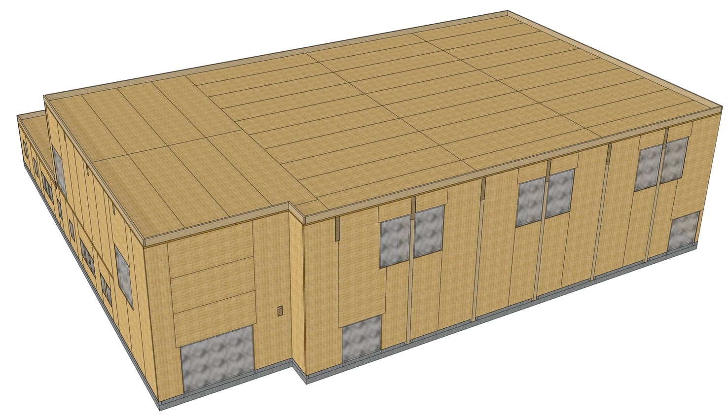 Per le strutture orizzontali di copertura, per i solai di interpiano e per la copertura bassa della palestra vengono sempre utilizzati pannelli xlam poggianti su pareti, travi rompitratta in legno e acciaio.